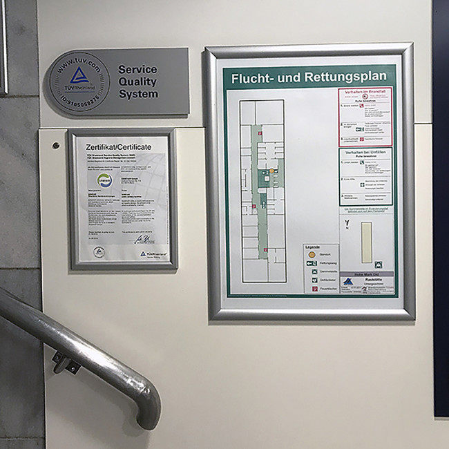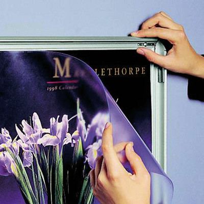 Silbereloxierten Alurahmen mit Ecken auf Gehrung. PS Rückwand in weiß und entspiegelter APET Frontscheibe. Komplett mit Schrauben und Dübeln geliefert.