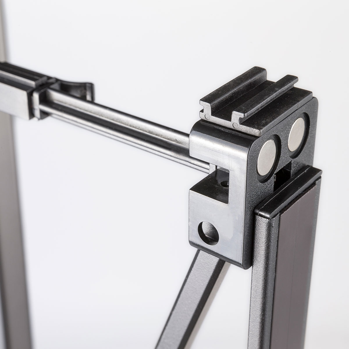 - mattschwarzer pulverbeschichteter Aluminiumrahmen mit patentierten Scharnieren und Magnetverriegelung