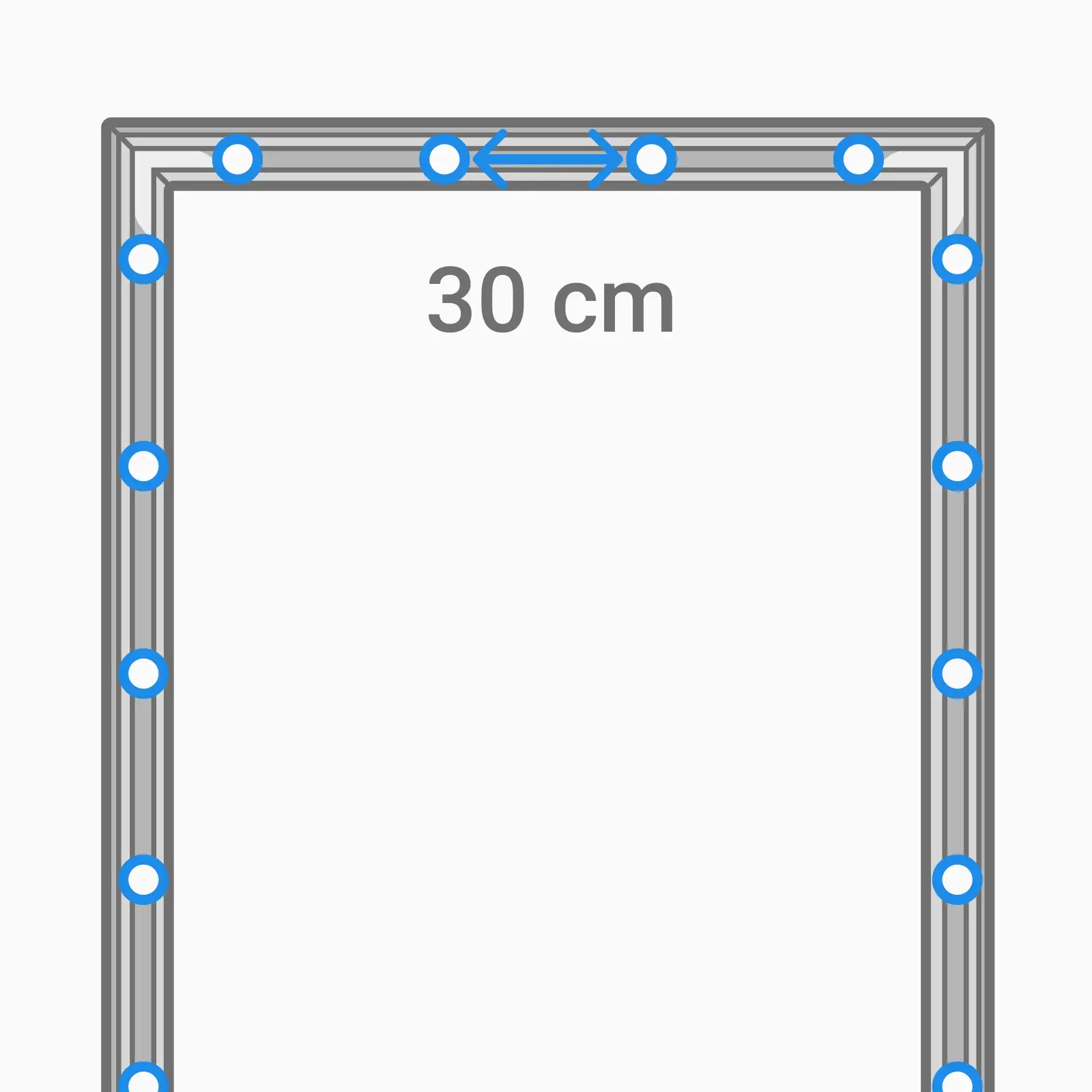Wählen Sie selbst die gewünschte Größe und Rahmenfarbe. Wählen Sie zwischen einem silbernen, schwarzen oder weißen Profil.